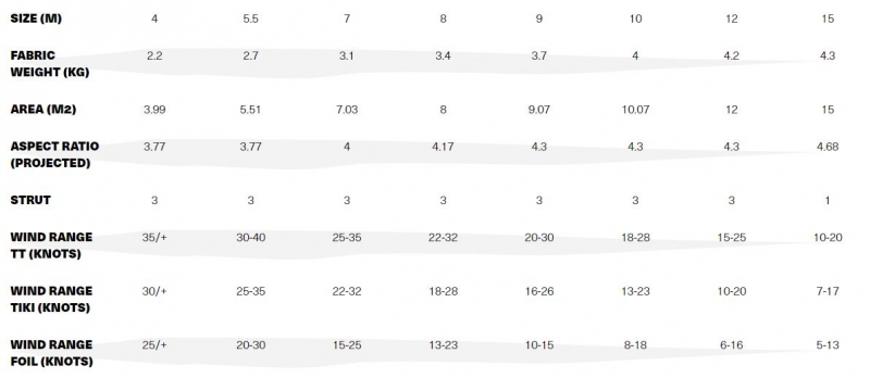 Každá velikost draka má trochu jinou konstrukci, každá velikost je propracována k ideálním vlastnostem. Skvělý hangtime, příjemný drift ve vlnách, přesný i ve slabém větru.