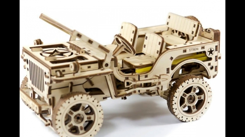 Jeep je synonymem drahého terenního vozidla, které překoná spoustu překážek a nebezpečí. Sestavte si model tohoto vozu, a kromě krásné dekorace interiéru budete mít i o zábavu postaráno. Součástí balení je také páskový motor, který natočíte pomocí dřevěného klíče (najdete ho v rezervním kole) a spustíte Jeep. Po montáži je potřeba nastavit polohu páčky dopředu nebo dozadu, nastavit blokovací páku v zastávce, model nastartovat pomocí klíče a spouštět páčku. Přední kola jsou řízená. Otevřete a upevněte kapotu dvěma zámky a sklopte čelní sklo. Jeep se může pochlubit dalšími prvky - převodovka pohonu čtyř kol, nezávislé zavěšení na obou nápravách, spalovací motor s pohyblivými písty, 3 pohyblivé pedály, zpětné zrcátko a další. Jeep ujede až 4 metry a je skutečným nálezem pro ty, kteří mají rádi dobrodružství.